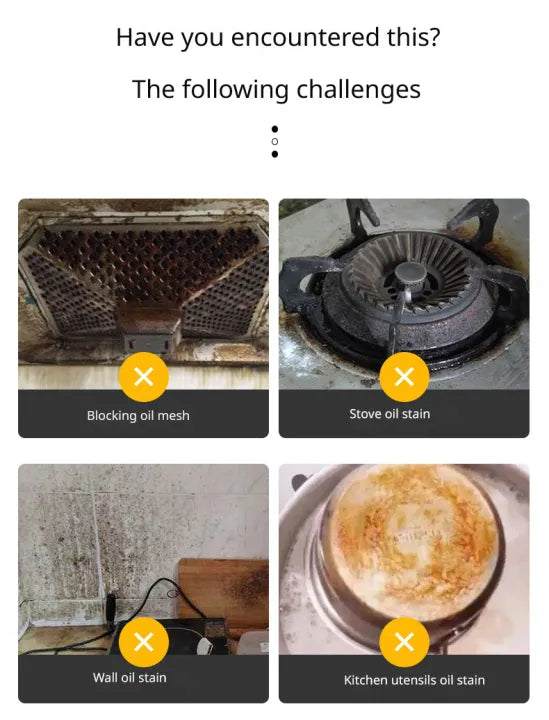 Struggling with tough kitchen stains? Our Japanese Multifunctional Kitchen Oil & Grease Stain Cleaner Foam is specially formulated to break down stubborn grease, dirt, and grime from all your kitchen appliances in seconds! 🔥 Whether it's your stovetop, range hood, oven, or countertops, this powerful foam lifts away deep-set oil stains effortlessly, leaving your kitchen sparkling clean! ✨