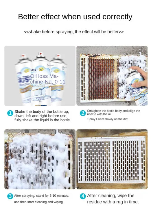 With the Japanese Multifunctional Kitchen Oil & Grease Stain Cleaner Foam, maintaining a pristine, grease-free kitchen has never been easier! No more scrubbing for hours—just spray, wipe, and enjoy a sparkling clean kitchen! 🚀🧼
