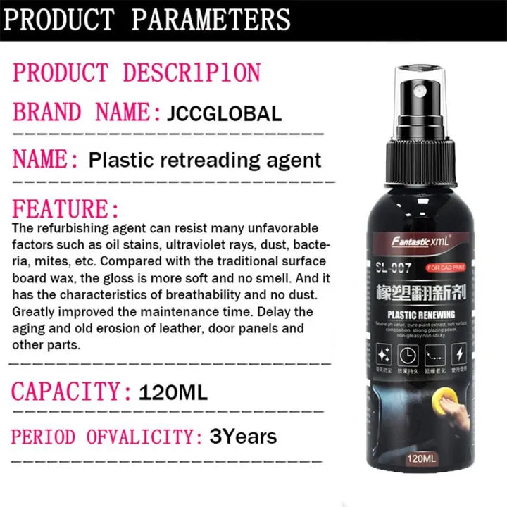 This powerful refurbishment formula restores deep color, protects against harsh weather, and keeps surfaces looking new for weeks. Perfect for cars, bikes, and home plastics 🚙🏍️🏠.